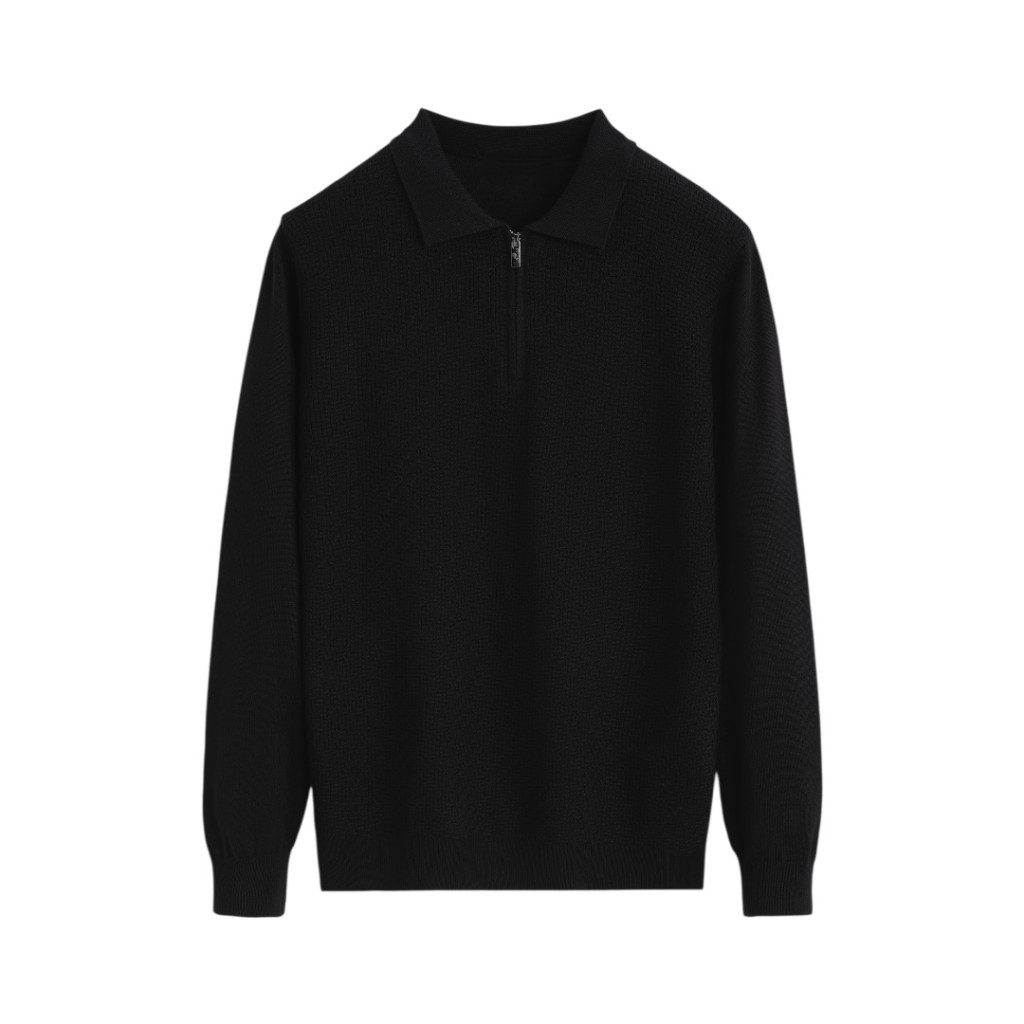 Slim Fit, fekete galléros hosszú ujjú felső, rövid cipzárral, finoman strukturált felülettel
