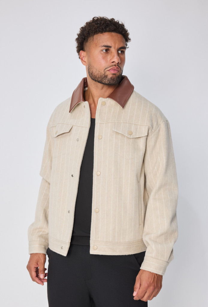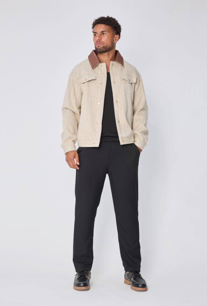 Regular Fit, galléros csíkos bézs dzseki, puha tapintású texturalt anyagból, patentos záródással, két mellzsebbel, patentos kézelővel