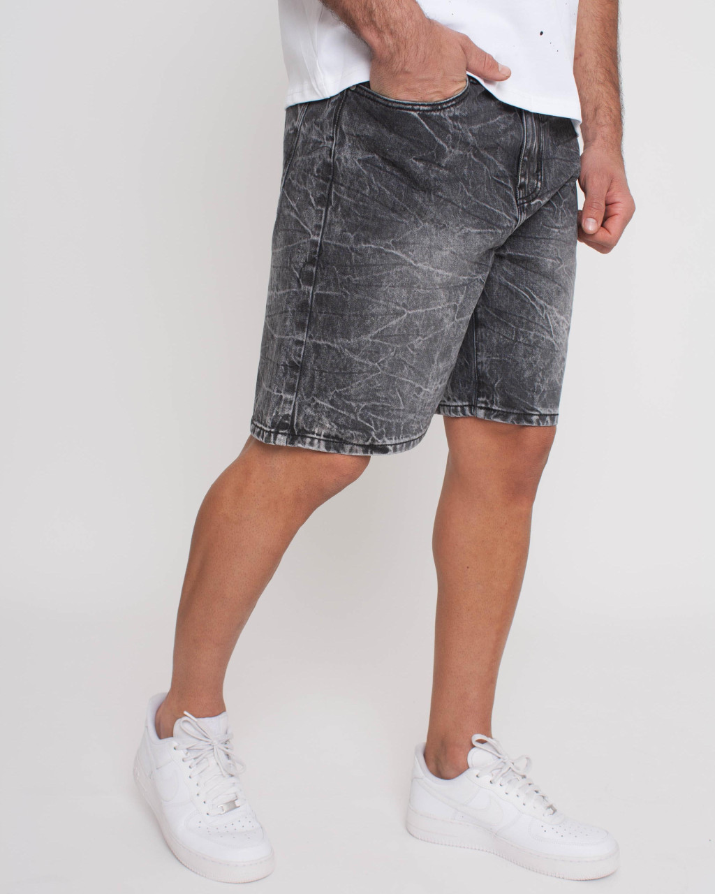 Baggy Fit, laza szabású, koptatott mosott hatású rövidnadrág, zsebekkel és cipzáros záródással