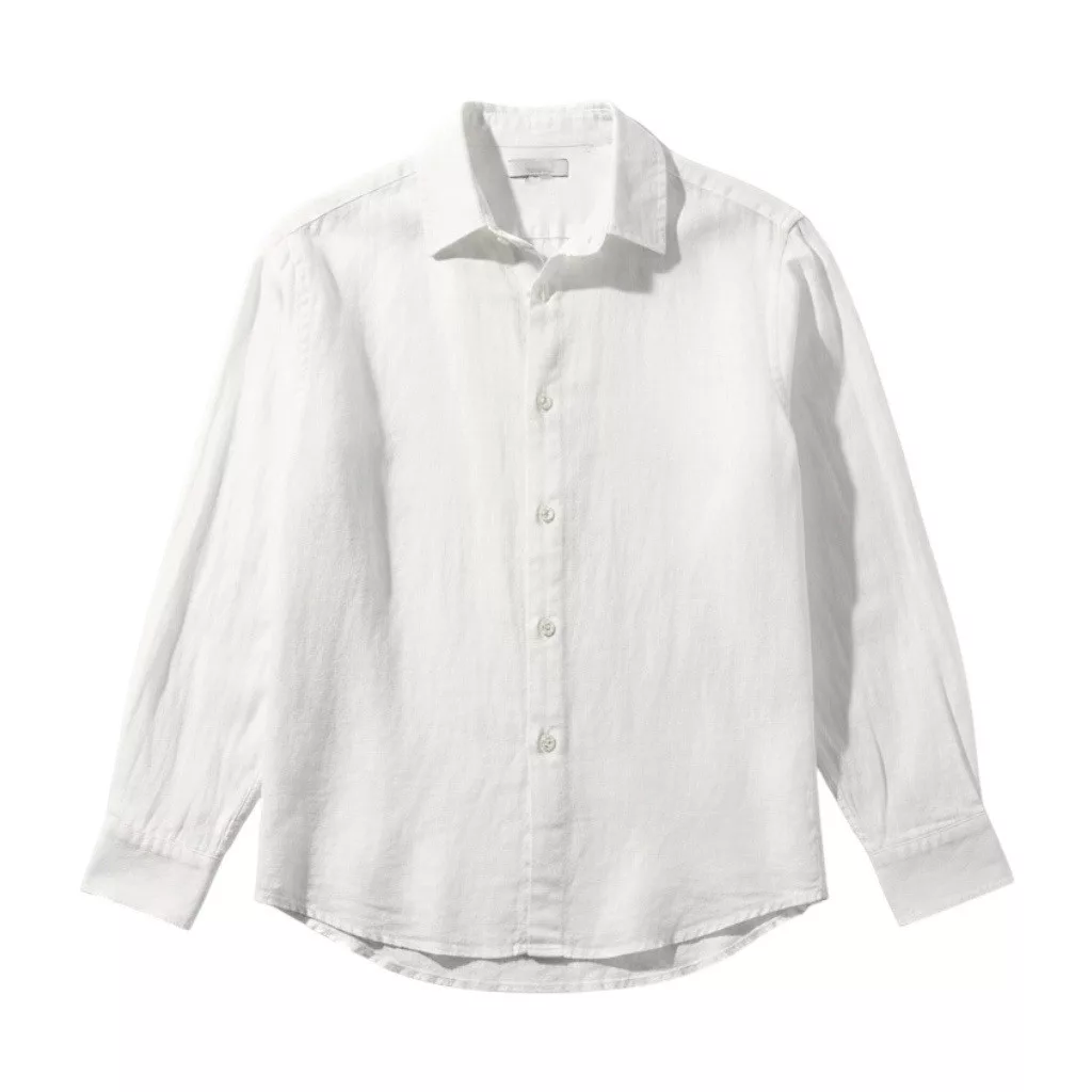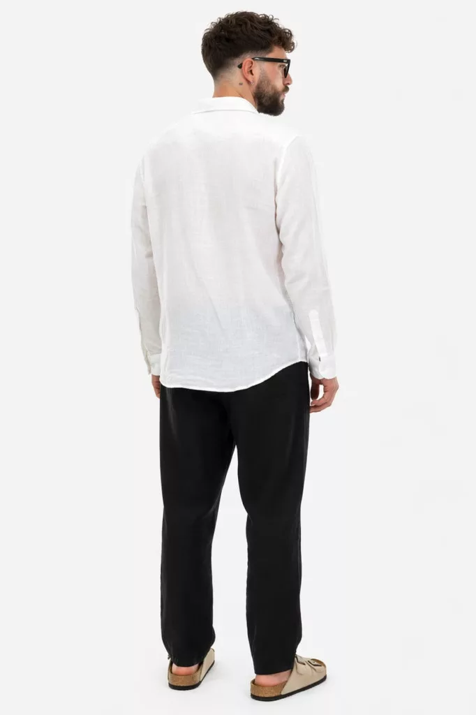 Slim Fit, fehér hosszú ujjú , vékony len anyagú ing , gallérral, gombolható kézelővel, lekerekített alsó szegéllyel