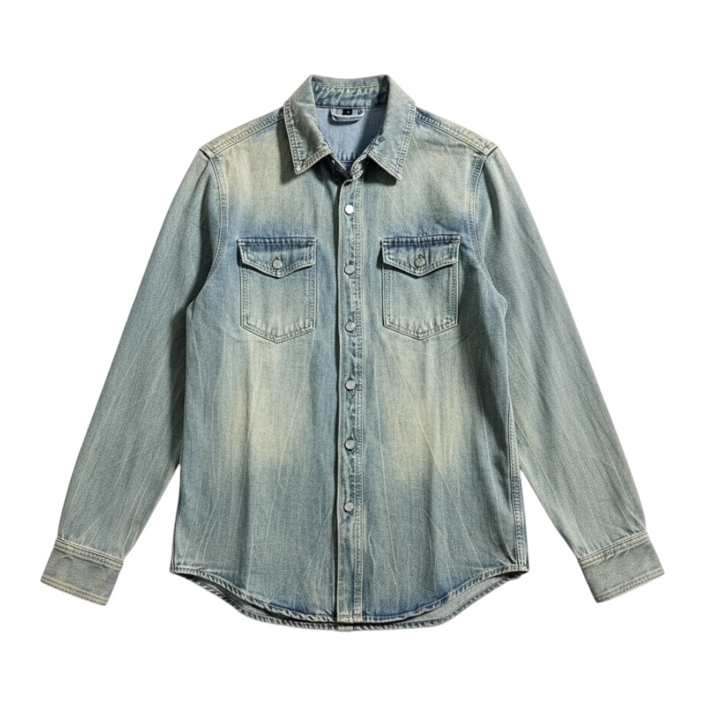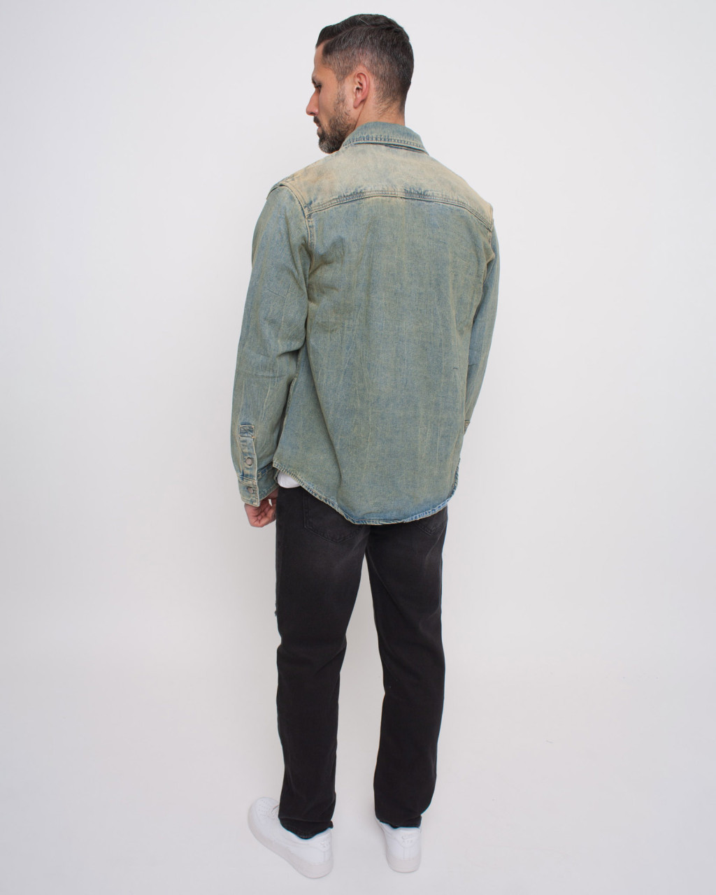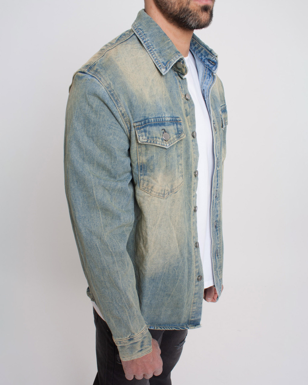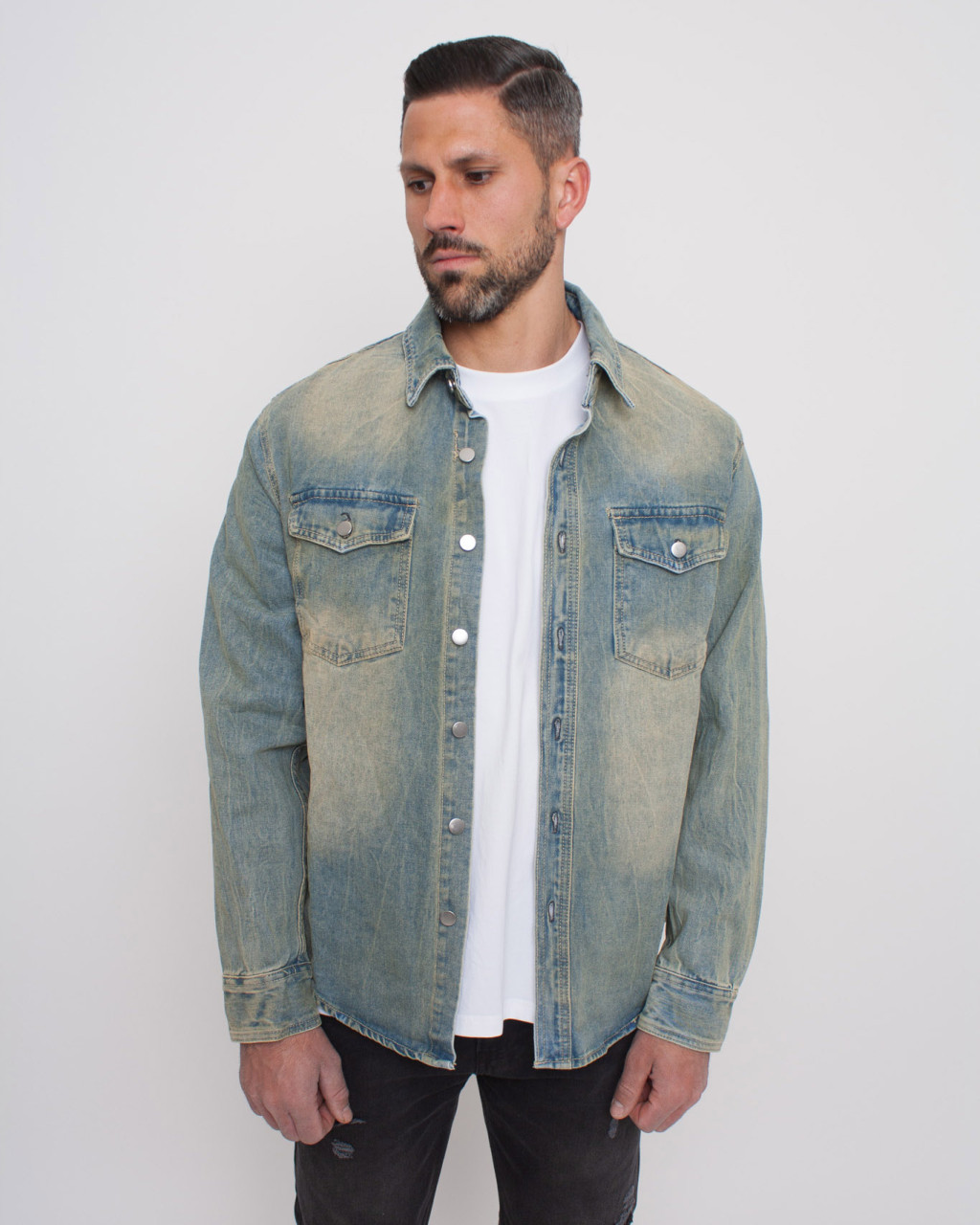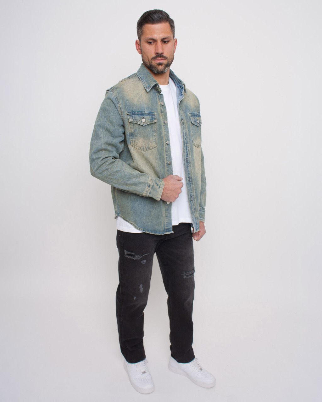 Regular fit, koptatott, mosott vintage hatású farmerkabát, gallérral, lekerekített alsó szegéllyel, gombos záródással és kézelővel