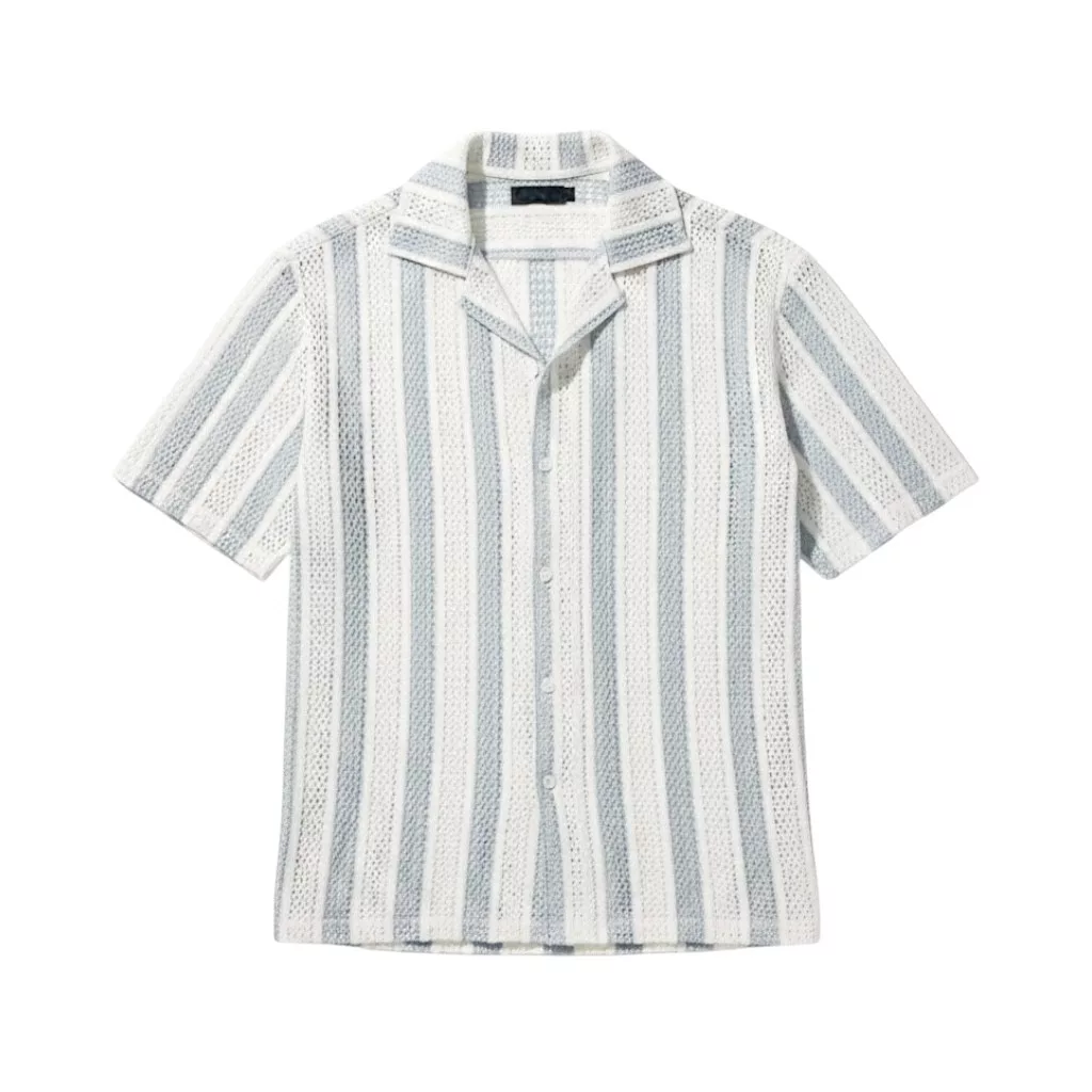 Regular Fit, csíkos lyukacsos kötött rövidujjú ing, gallérral és egyenes alsó szegéllyel