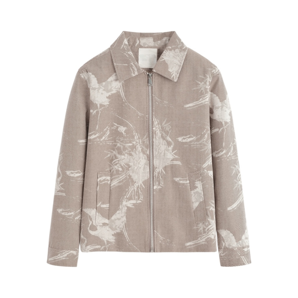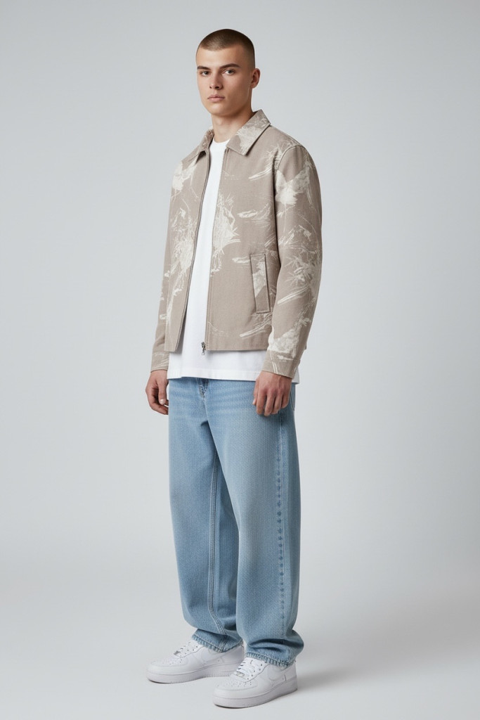 Slim fit, rövid fazonú galláros mintás farmer anyagú overshirt, cipzáros, patentos kézelővel, egy mellzsebbel és egyenes alsó szegéllyel