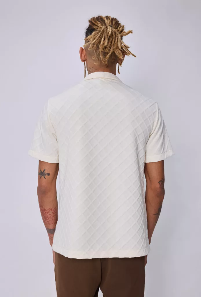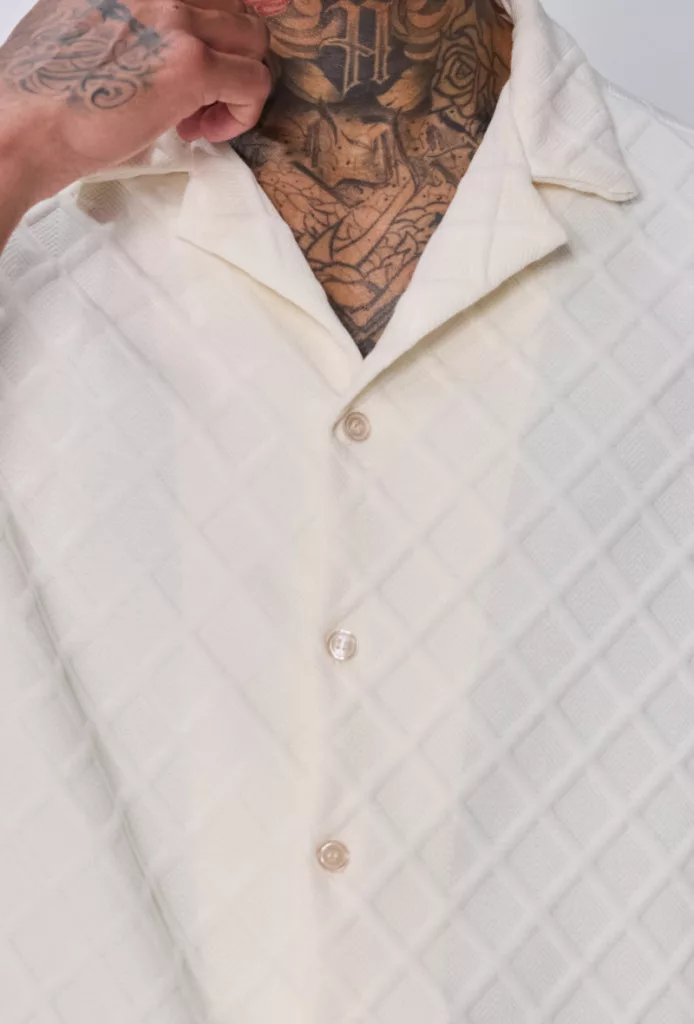 Regular Fit szabású, magában mintás bézs színű ing, gallérral és gombos záródással